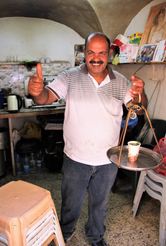 Der er mulighed for mange oplevelser i Bethlehem. Vi vil dele lidt mere om det at komme til og at være i Bethlehem, i en senere blog, men her kommer en lille appetitvækker. Denne oplevelse kom gående imod os på gaden... Han bar på en bakke med te, og et bredt smil. Straks inviterede han os på te: ”Welcome, I make the best tee”.